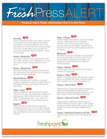 The FreshPress market report is real-time look at the most common produce items, including regional outlooks (East Coast, West Coast, and Mexico) as well as our Top 5 and Reality Check!